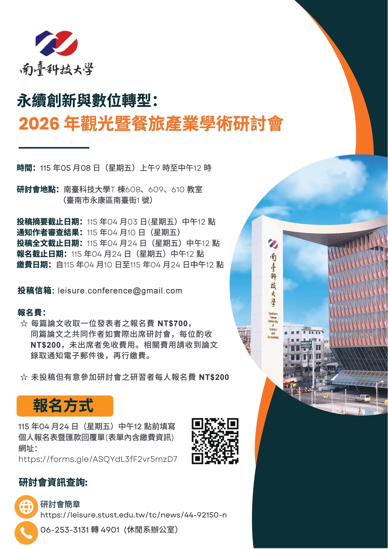 【活動資訊】2026年觀光暨餐旅產業學術研討會